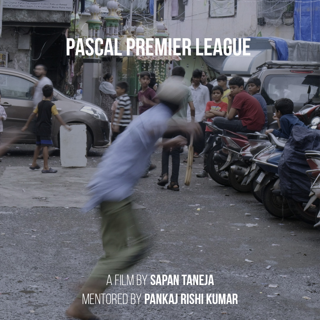 Pascal Premier League is a fi lm about the transformation of a street with a deep history of violence, displacement, and change into a space of joy and community. Set on Shahid Road in Jogeshwari East, a neighbourhood once marked by the 1992–93 Bombay riots, the fi lm observes how a group of young boys reclaim this narrow lane by turning it into a cricket league of their own. What was once a site of fear and memory now becomes a fi eld of play and laughter. The act of reclaiming this space is both resistance and celebration, refl ecting how everyday life, imagination, and play can redefi ne the meaning of public space in a city constantly reshaped by ever consuming change and evolution.